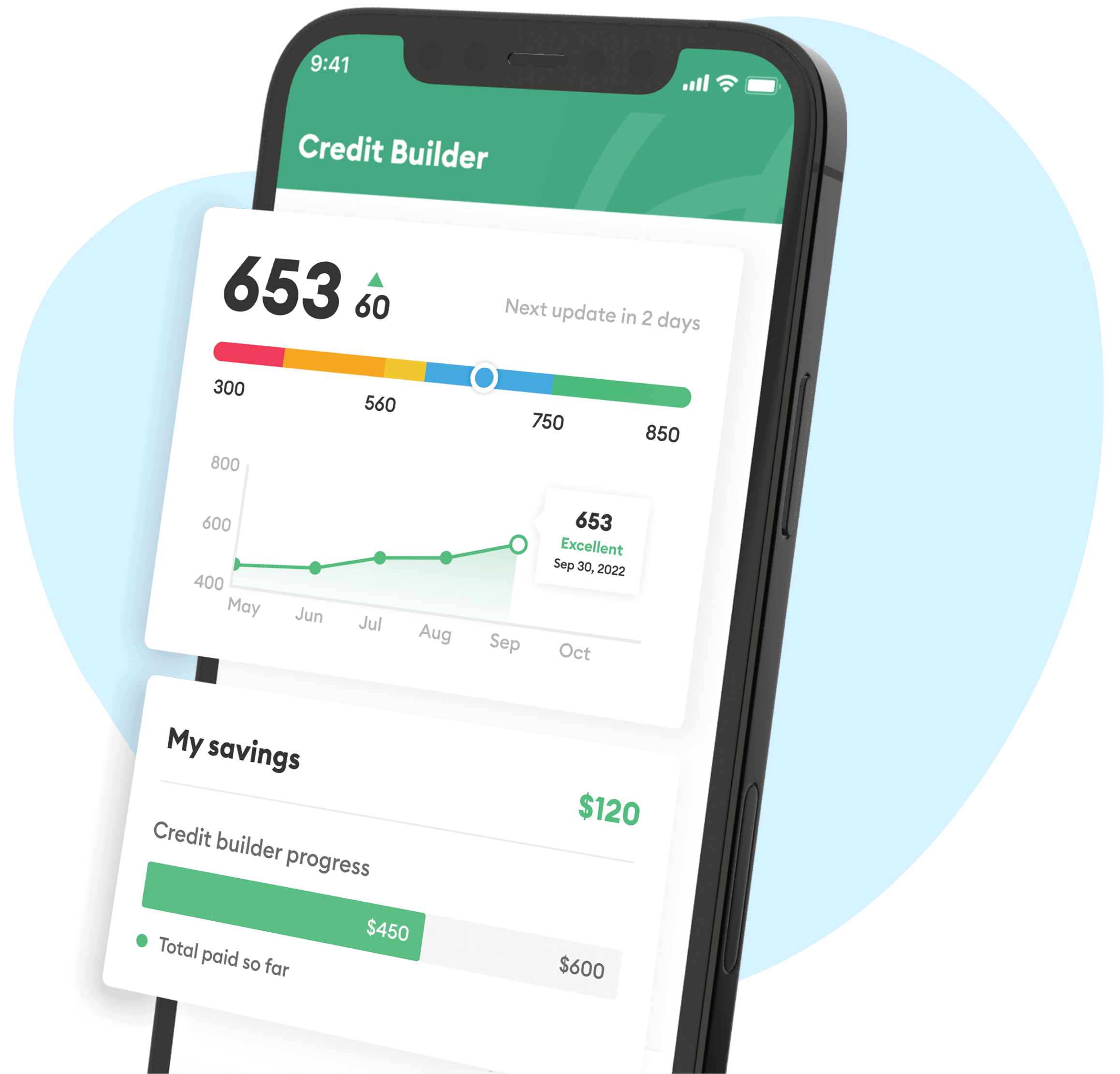 The Credit Builder account is designed to help you to build credit by setting aside savings each month.